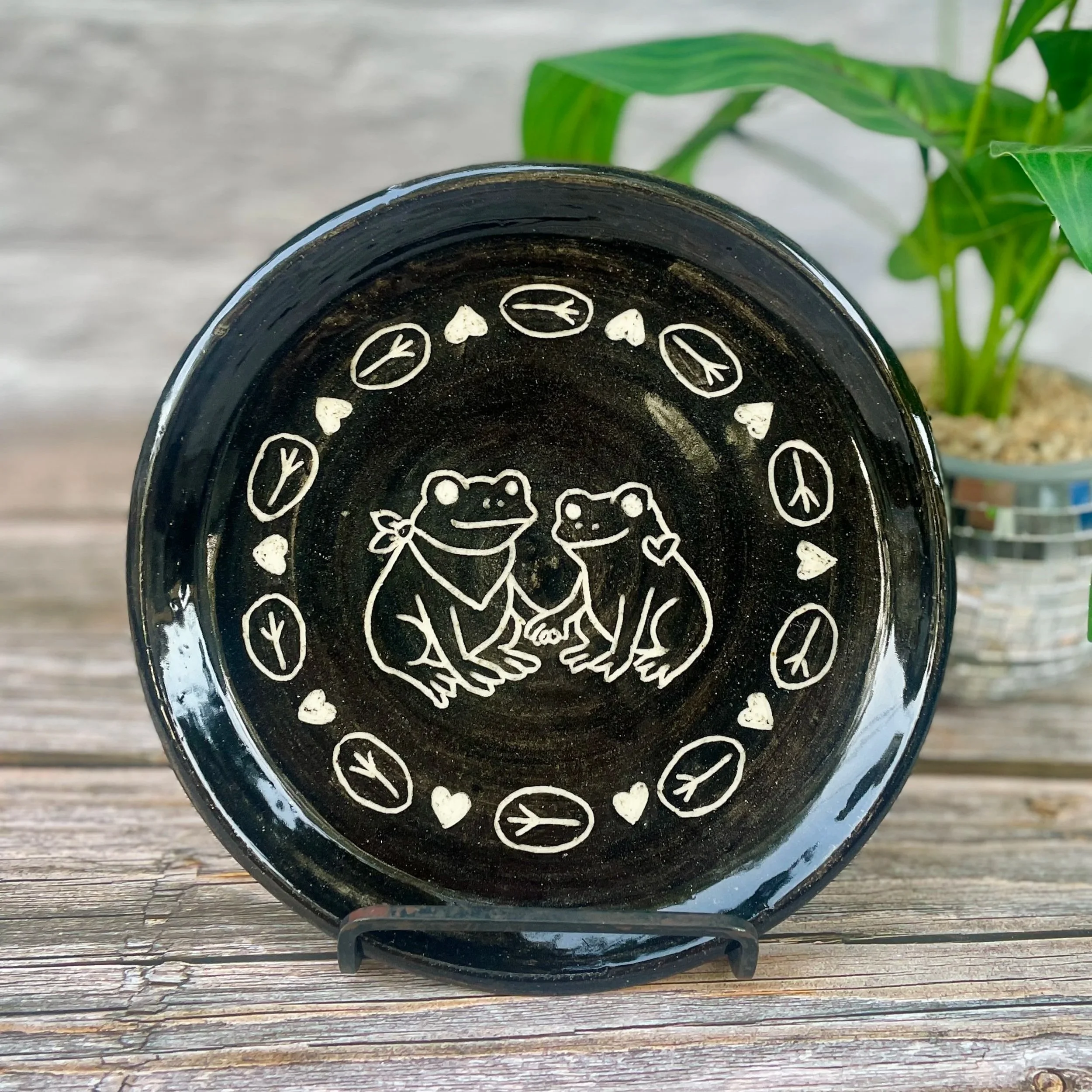 About their body of work, Corey shares, “I’m drawn to imagery that celebrates joy and intimacy, like two frogs holding hands or a planter wrapped in a full-on rainbow. Pride isn’t an afterthought in my work; it’s baked right into the clay.”